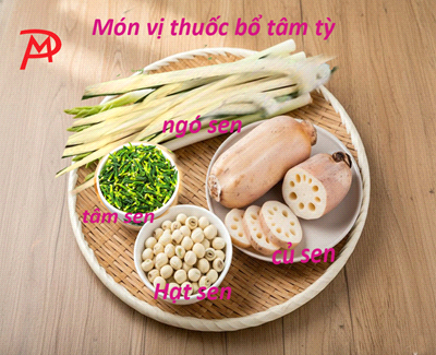 - Hạt sen (Liên nhục): Dưỡng tâm, bổ tỳ, giúp ngủ sâu, trị hay mộng mị. Nấu chè với đậu xanh, tim heo hoặc hầm với gà rất hiệu quả.