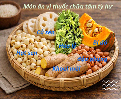 Tốt nhất như Hạt sen, Củ sen, Hoa lý, Bí đỏ, Đậu phụn g, Koai mài. Nên dùng dạng nấu canh/hầm nhừ / náu cháo giúp dạ dày dễ hấp thu hơn.